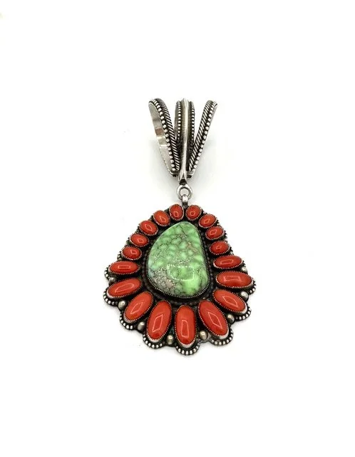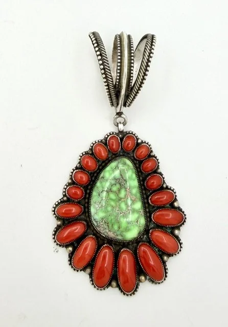 This sterling silver pendant is set with an Australian Variscite stone. It measures 1 5/8" in height that includes the bail and it is 5/8".